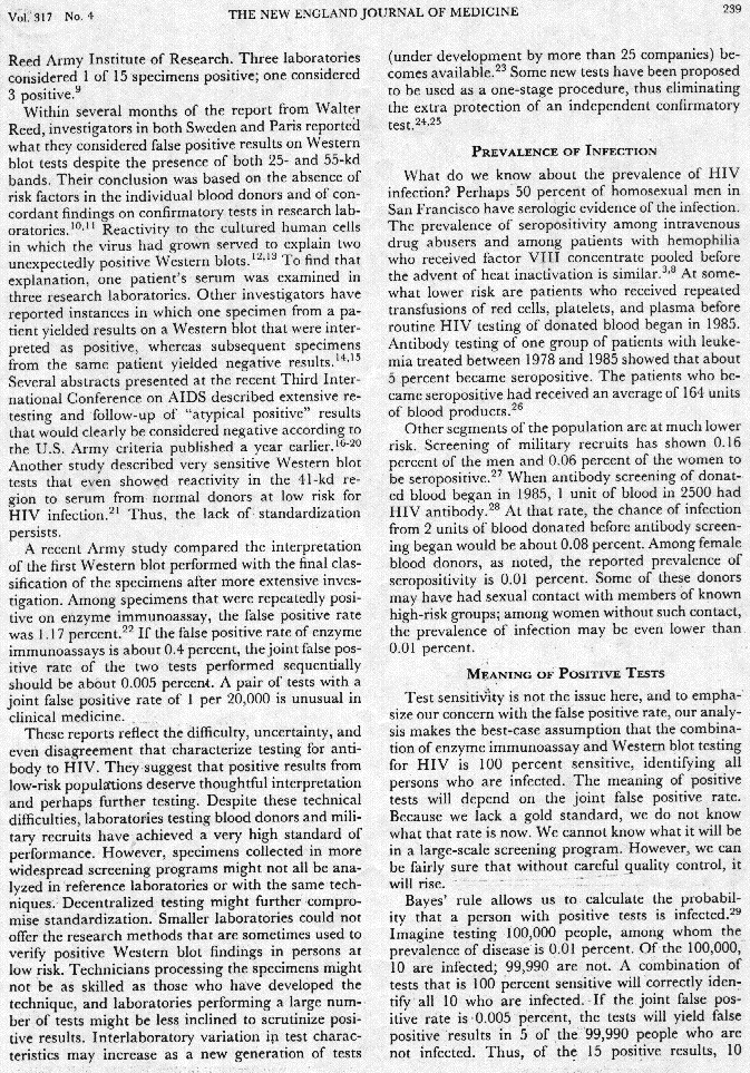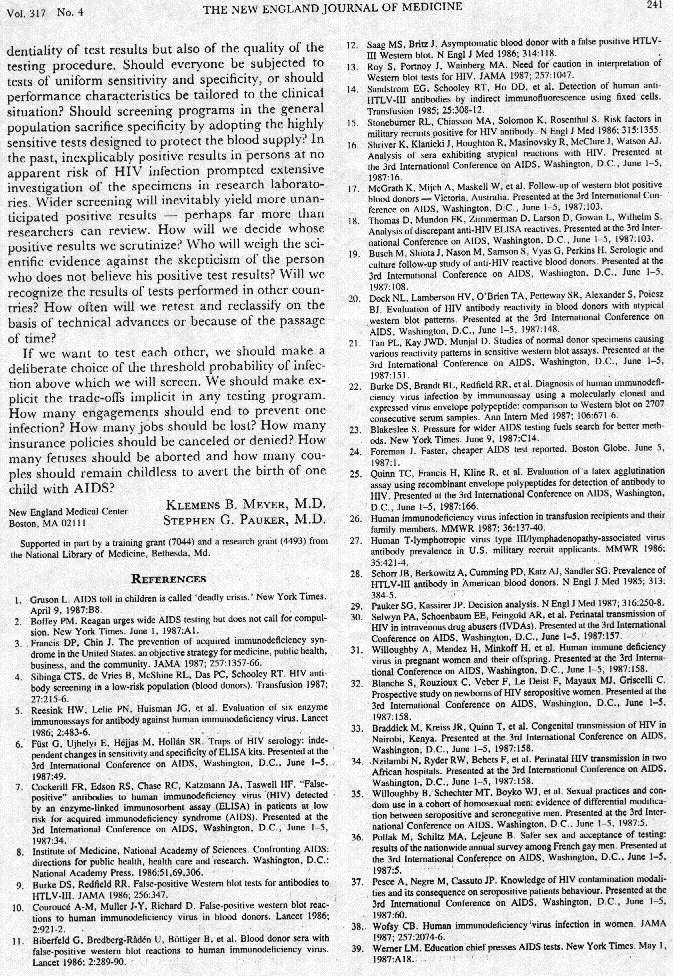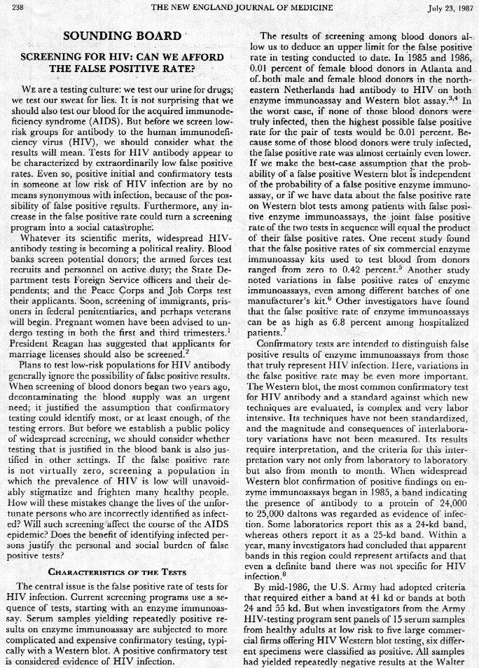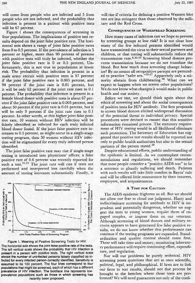 Screening for HIV: Can we afford the False Positive Rate? Meyer and Pauker (NEJM1987)