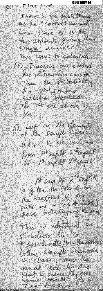 QUIZ for last 1/2 hour of Class on Monday 14th.