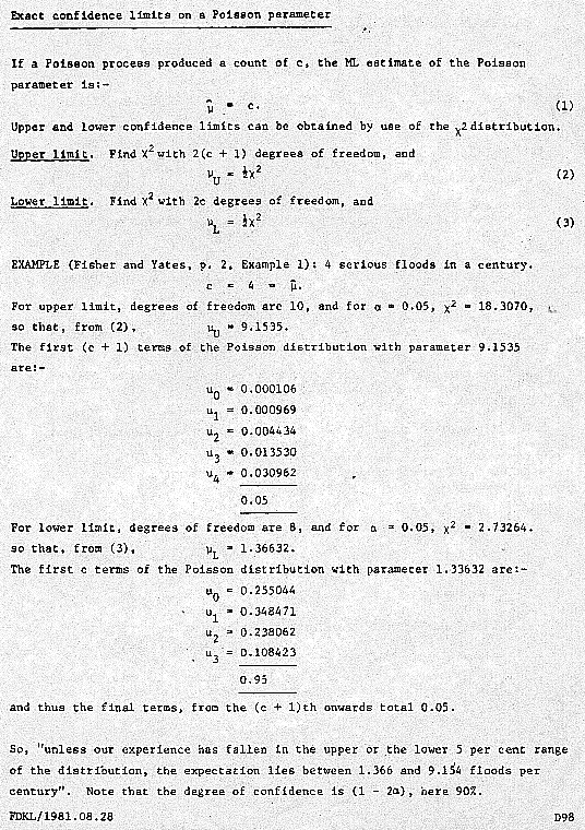 - Exact confidence limits on a Poisson parameter: Excel worksheet